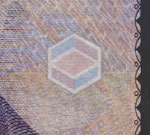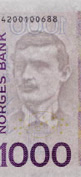 1. Степени защиты норвежской кроны – водяной знак, который повторяет портрет, изображённый на аверсе банкнота, и включает номинал банкнота. Расположен в центральной части на левой стороне аверса банкноты. Виден при осмотре банкнота против света и с аверса, и с реверса.