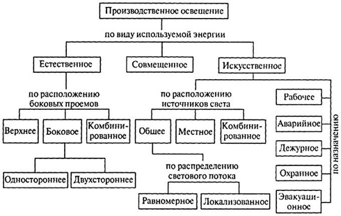 - Требования к освещению таковы, что необходимо не просто освещение помещения или отдельного рабочего места, а создавать освещение, подходящее характеру выполняемой работы. Если освещения недостаточно, снижается работоспособность и производительность работы, возникает утомление рабочего персонала. Существует три вида освещения: естественное, искусственное и комбинированное.