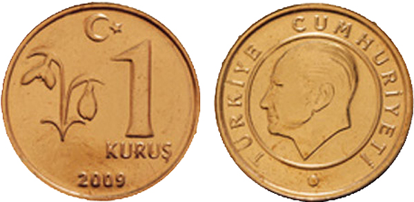 Внешний вид 1 (одного) куруша турецкой лиры: